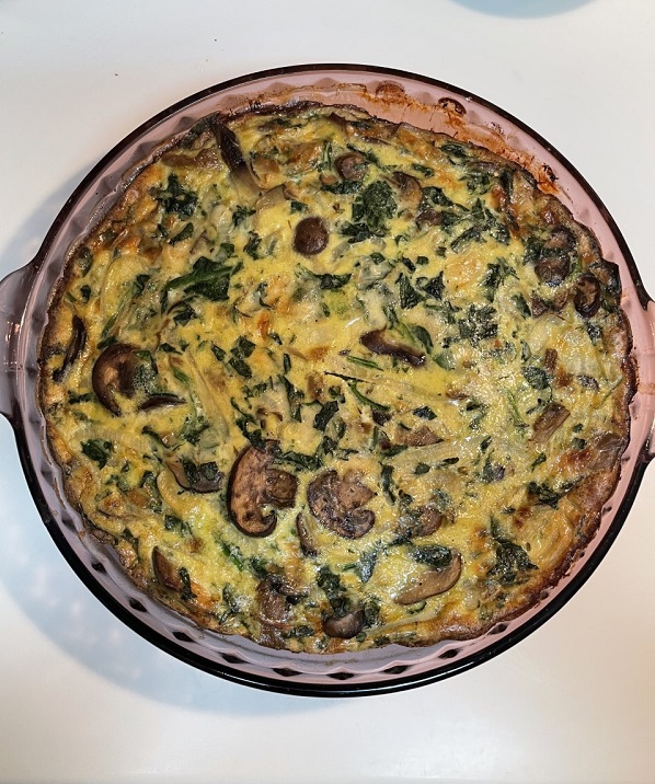 7. Gently transfer contents of bowl to prepared pie dish. Back in hot oven until set and golden brown in spots, around 30 - 35 minutes.