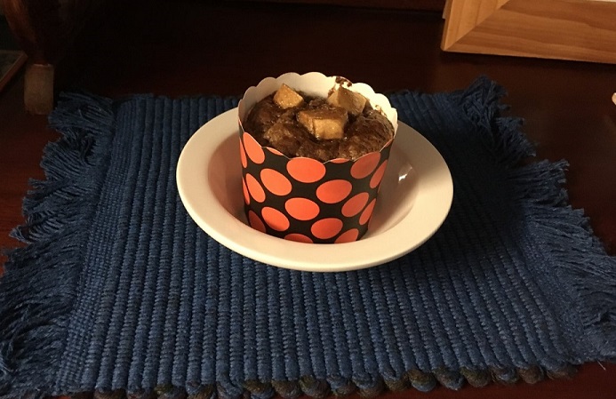 7. Spoon the batter into the prepared cups evenly. Drop remaining 1/4 apple chunks onto the batter of each cup and sprinkle coconut sugar over the apples and batter. You can add cinnamon to the coconut sugar.