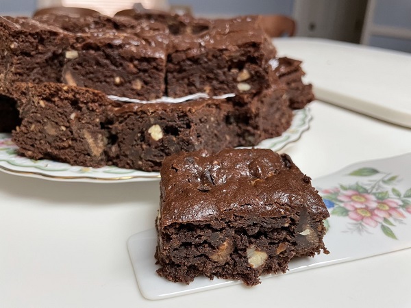 11. Cool in pan on wire rack for 15 minutes. Grasp foil and transfer brownie cake in foil to wire rack. Cool completely. Use a serrated knife to cut brownies, dipping knife in warm water and wiping blade dry with paper towel between cuts.