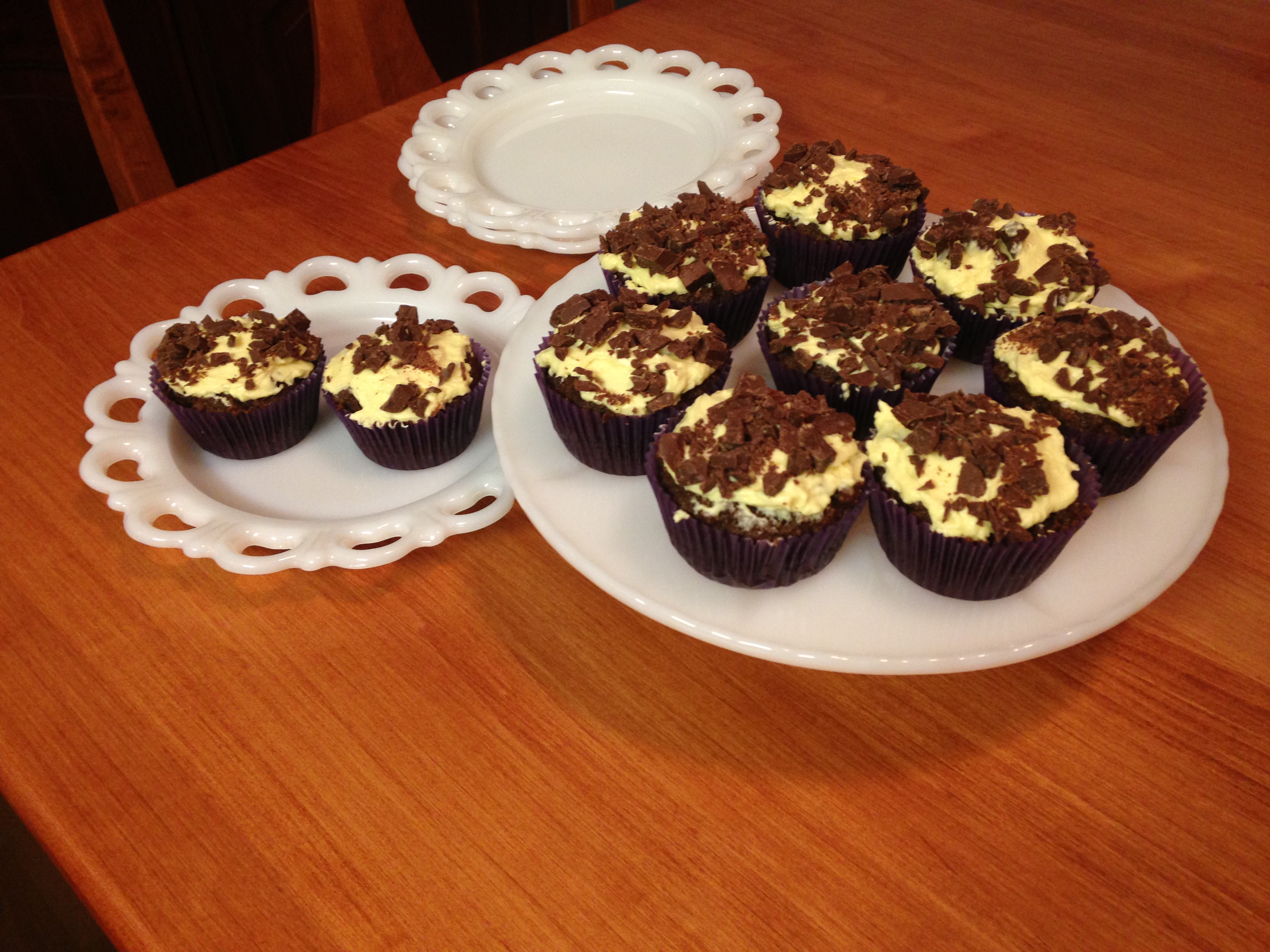 3. Put roughly chopped chocolate in a small bowl, and dip each frosted cupcake into the chocolate to cover.