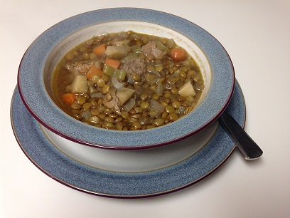 4. Add the lentils and mix to coat. Add the chicken broth (and optional wine) and bring to a boil. Reduce heat to medium, and simmer, stirring occasionally until lentils are tender, about 20 - 30 minutes.