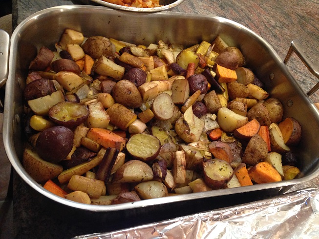 5. Place pan of vegetables hot oven and roast for 30 minutes, stirring occasionally. If using more than one pan, put one pan in the center and one in the bottom third of the hot oven.