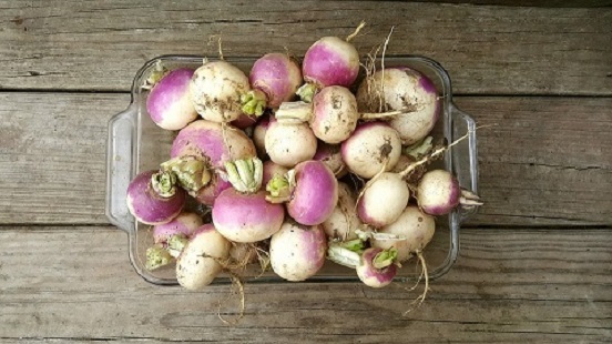 4. After 35 minutes, increase oven temperature to 450 degrees F, and roast for an additional 15 minutes or until the turnips start to caramelize and test done when pierced with fork.